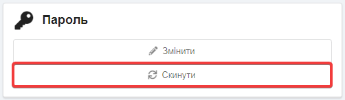 - У блоці «Пароль» натисніть «Скинути» (натискати можна не частіше 1 разу на 10 хвилин):
