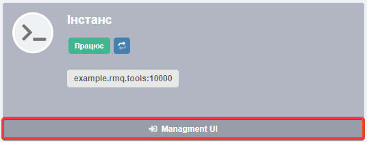 У розділі «RabbitMQ» у блоці «Інстанс» натисніть «Management UI»: