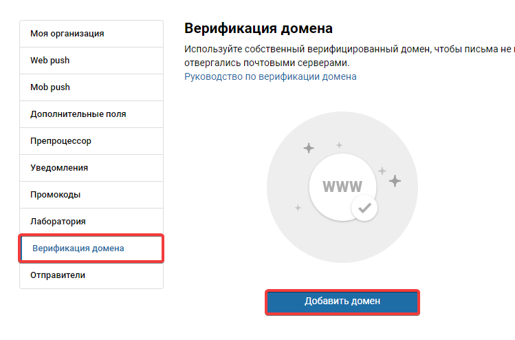 - Перейдіть у розділ «Верифікація домену» і натисніть «Додати домен»:
