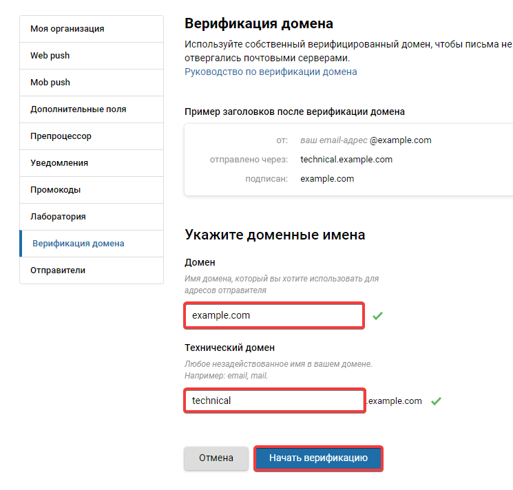 - Вкажіть домен, технічний піддомен і натисніть «Почати верифікацію»: