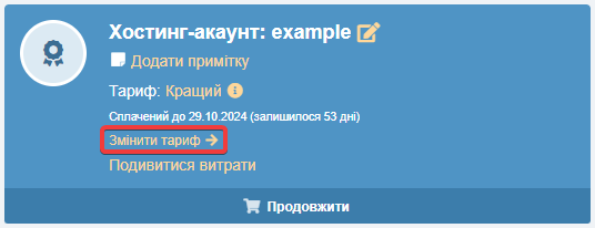 - У блоці «Хостинг-акаунт» натисніть «Змінити тариф»: