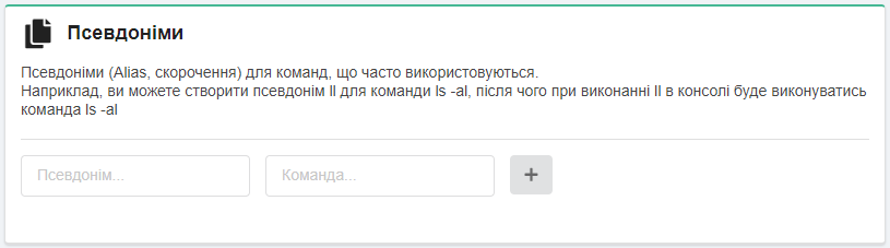 - ➕ — додає рядок для ще одного аліаса.