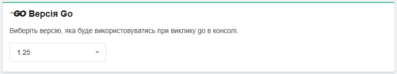 У блоці «Версія Go» встановлюється версія Go, яка буде використовуватися в консолі: