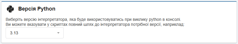 У блоці «Версія Python» встановлюється версія Python, яка буде використовуватися в консолі: