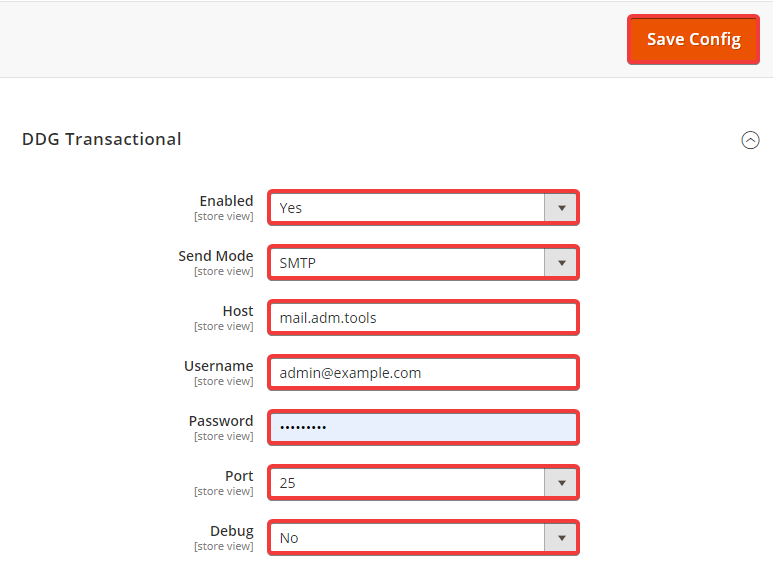 2.14.13.6. Налаштування пошти в Magento