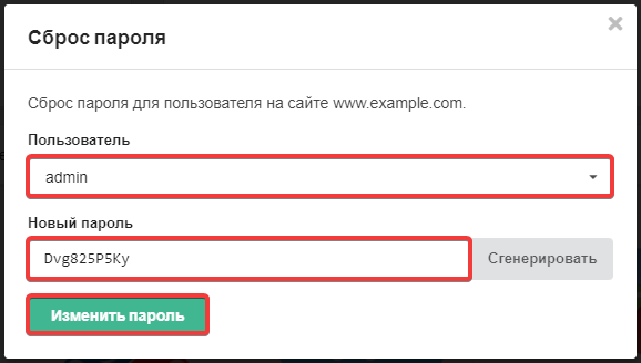 - Виберіть користувача, вкажіть новий пароль і натисніть «Змінити пароль»:
