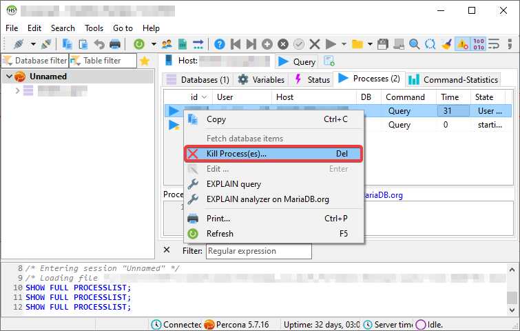 2.6.1.2.2.3. Завершення процесів за допомогою HeidiSQL