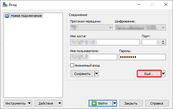 2.5.2.2.3.1. Налаштування підключення по FTP у WinSCP