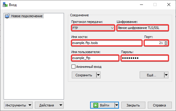 - «Ім'я хоста» — хост FTP.