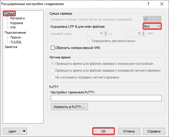 - У розділі «Середовище» у рядку «Кодування UTF-8 для імен файлів» виберіть«Увімк» і натисніть«ОК»: