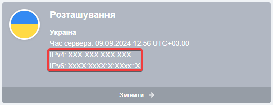 Основні адреси IPv4 і IPv6 хостинг-акаунта виводяться в розділі «Хостинг» у блоці «Розташування»:
