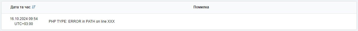 - «Час» — дата і час помилки.