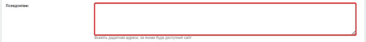 - У полі «Псевдоніми» вкажіть адресу псевдоніма (кілька псевдонімів можна вказувати через кому або з нового рядка) і збережіть зміни: