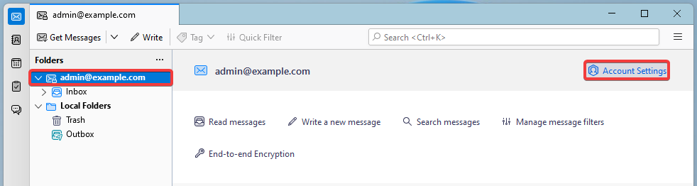 - В основному вікні в списку папок виберіть доданий обліковий запис і натисніть «Account Settings»: