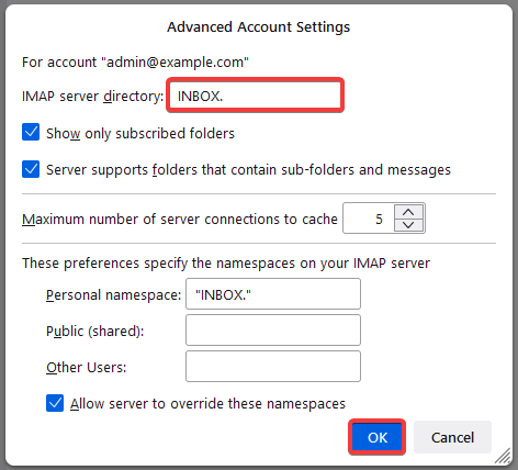 - У полі «IMAP server directory» вкажіть