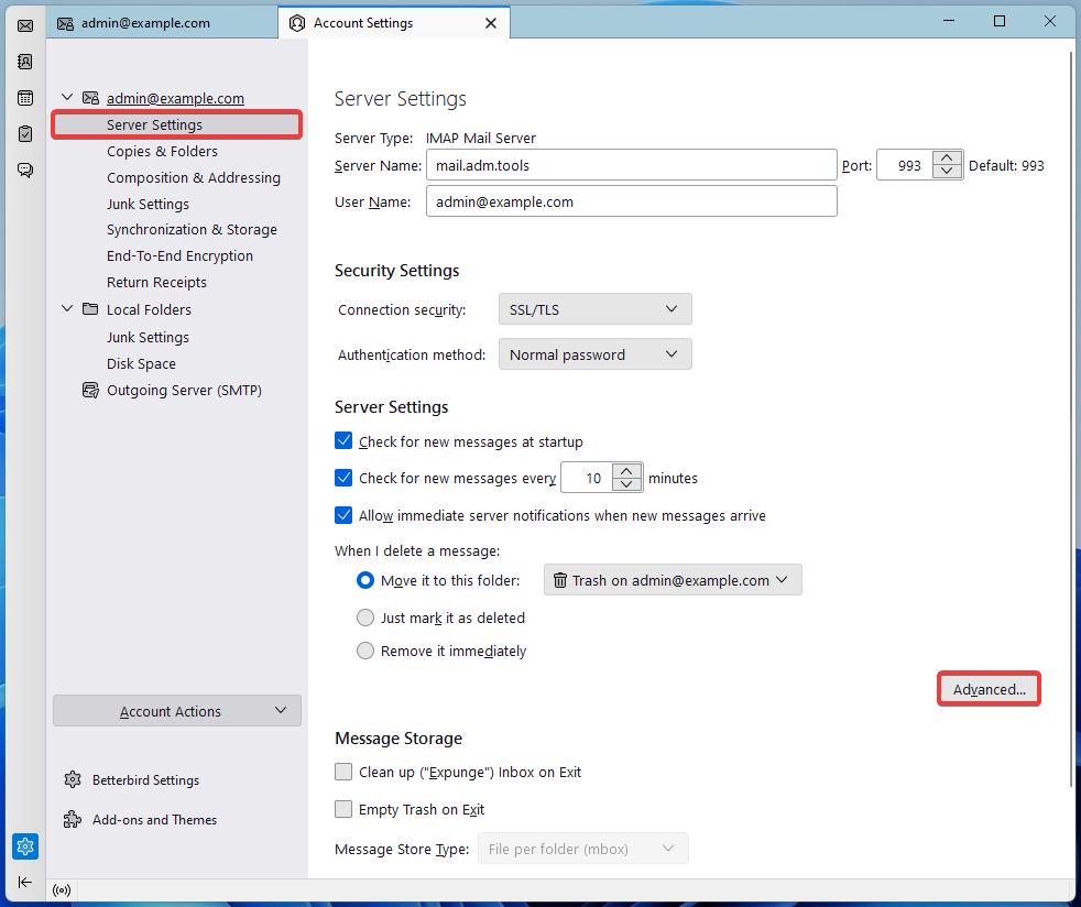 4.3.9.7. Налаштування поштового клієнта Betterbird
