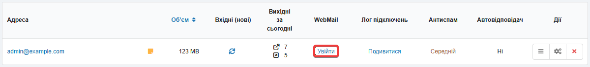 - Якщо налаштований дизайн WebMail — за власною адресою WebMail.