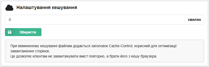 Додавання до файлів заголовка Cache-Control. Дає змогу використовувати механізм браузерного кешування — при повторному зверненні до файлу браузер братиме його з кешу, якщо з моменту попереднього завантаження файлу з сервера минуло менше часу, ніж задано в налаштуваннях кешування.