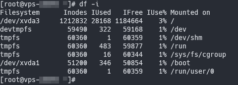 Для перевірки інодів на диску потрібно підключитися до сервера по SSH або VNC і виконати команду: