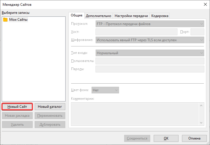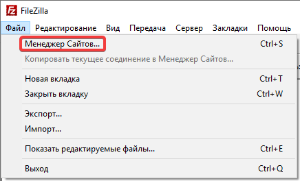 - Відкрийте розділ «Файл → Диспетчер Сайтів»: